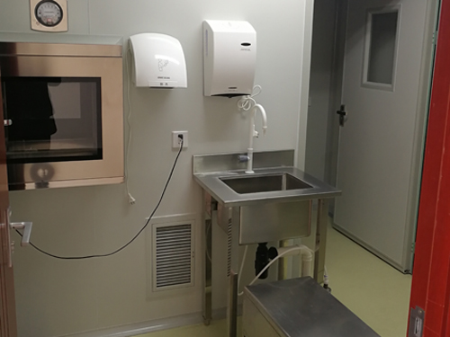 準備室還要用于洗刷器皿等。室內應備有加熱器、蒸鍋,洗刷器皿用的盆、桶等,還應有各種瓶刷、去污粉、肥皂、洗衣粉等。